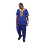 - Gold breastplate design on the dashiki and sleeve edges