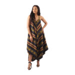 - Colorful Kente stripes offer an eye-catching contrast against the black background.